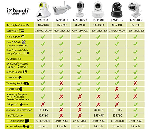 -. Title : iZtouch IZSP-007 Outdoor Security Home Office Warehouse 1280x720P HD H.264 Wireless/Wired IP Camera with IR-Cut Filter Night Vision QR Code Scan Phone Apps Remote Monitoring ONVIF Supported