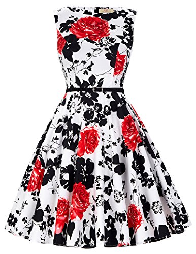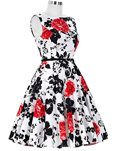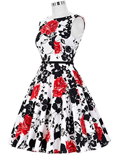 Feature : Color: Floral Pattern/Polka Dots/Solid Color(As pictures show) / Features: Scoop Neck, Sleevelss Style, Knee-length Hemline / Comes with Removeable Belt as Pictures Show / All of Them Have Concealed Zipper in the Back, No Lining / Notice: Please Select the Size Base on Our Size Chart on the Top LEFT Photos Show.