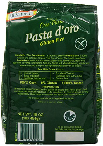 -. Binding : Grocery -. Brand : Sam Mills -. Label : Sam Mills -. Manufacturer : Sam Mills -. ProductGroup : Grocery -. ProductTypeName : GROCERY -. Publisher : Sam Mills -. Studio : Sam Mills -. Title : Sam Mills Pasta d' oro 100% Corn Pasta Gluten Free Fusilli -- 16 oz