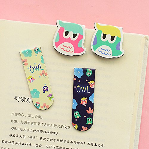 CatRat's Cute Magnetic Colorful Bookmarks - 4 sets (4 small + 4 large bookmarks) - Great for books and magazines, or for binding papers (Sleepy Owls)