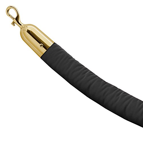 Lavi Industries Velvet Rope with Snap Hooks, 4 feet long, Black and Polished Brass