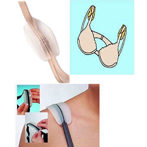 Adecco LLC 4 Pads Bra Strap Cushions Made of Hypoallergenic Non-slip Soft Silicone - Reusable Shoulder Protectors Two Translucent White and Two Light Skin...