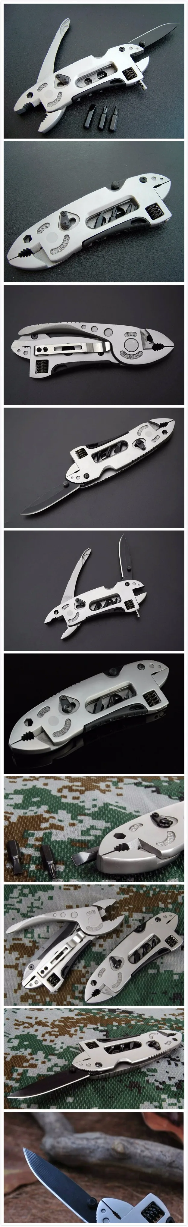 사냥 칼 생존 다기능 블레이드 야외 하이킹 캠핑 포켓 접는 조절 렌치 조 드라이버 펜치 도구