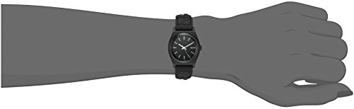 Black watch featuring round dial with silver-tone stick hands/indices and logo at 3 o'clock