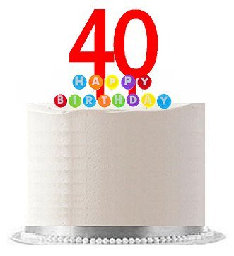 Item#040WCD - Happy 40th Birthday Party Red Cake Topper & Rainbow Candle Stand Elegant Cake Decoration Topper Kit