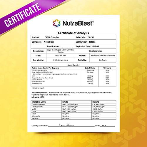 Getting Enough Vitamin C Your body does not naturally produce Vitamin C on its own, which is why you need it from other sources. This can include NutraBlast C1000 Complex - 50 count. Vitamin C plays an important role in supporting your body's cardiovascular and immune systems. It is also good to get the support of Vitamin C to promote resilient skin and better vision. The Vitamins You Need While supplements can be advantageous, you should try to get plenty of vitamins from your diet as well. A healthy diet in conjunction with the support of supplements is a great way to promote improved health throughout your body. NutraBlast C1000 Complex is great because it contains a sustained release formula. Therefore, you get vitamins over the course of several hours as opposed to all at once.Feature