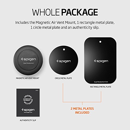 Car Mount, Spigen® [Air Vent Magnetic] Car Mount Holder [Quad Neodymium Core] Car Mount Phone Holder for Galaxy S7 S6 Edge Note 5 4 LG G5 G4 iPhone 6 6S SE Plus Nexus 5x 6P More - Black (SGP11583)