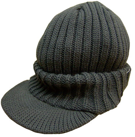 冬のオシャレに欠かせないニット帽も、つば付きならややミリタリーな印象に。