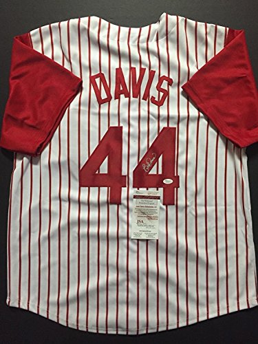 Autographed/Signed Eric Davis Cincinnati Reds Pinstripe Baseball Jersey JSA COA