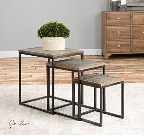 -. Title : Rustic Minimalist Nesting Accent Table Set | Wood Iron