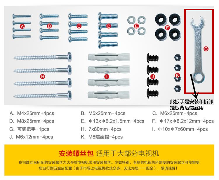 Note :some TV might need four long points screws in order to fix , its is better to prepare yourself 4 long screw in order to mount it , For Tv console installation pls as your own customer service whether it can be fitted for your console .