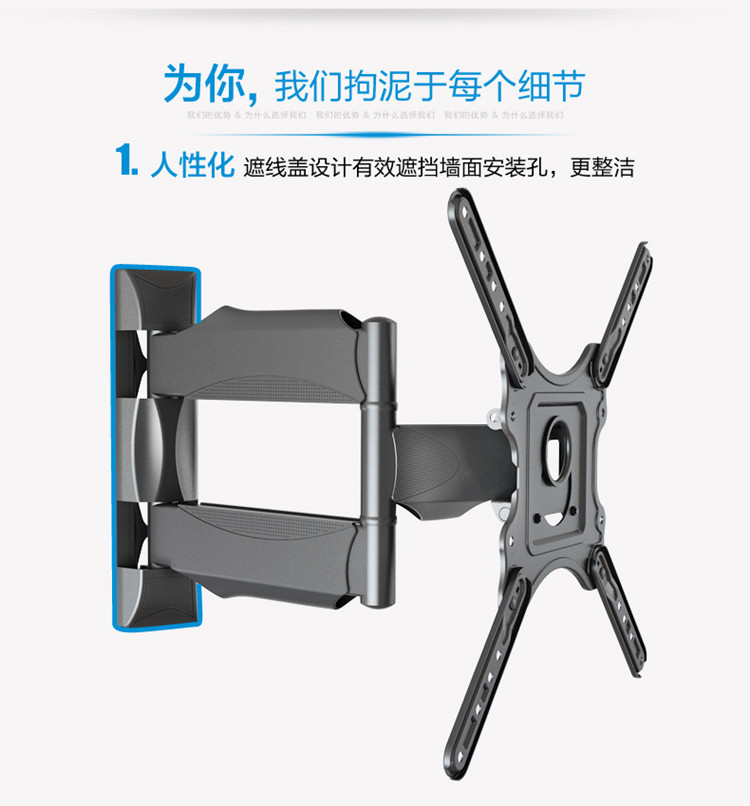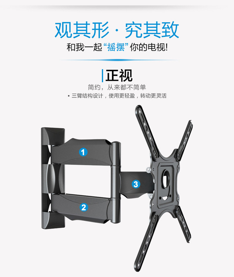 The load bearing portions of the mount are constructed from High Strength Steel providing a sturdy and reliable mount and separate cover pieces for the wall plate and pivot joints providing a clean finished look. The package includes the mount, manual, all necessary installation hardware.