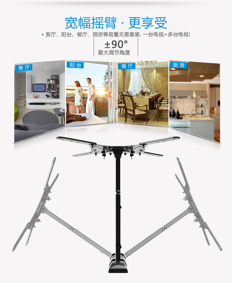 This is a full motion mount with 360 degrees of rotation, +/- 15 degrees of tilt and 180 degrees of swivel.