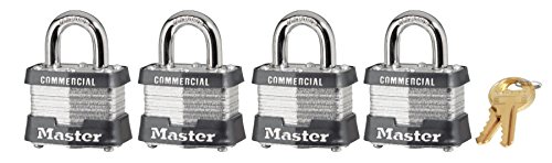 Master Lock 470-3QCOM No. 3 Laminated Steel Pin Tumbler Padlocks, 9/32" Diameter, 3/4" Length x 5/8" Width, Silver (Pack of 4)