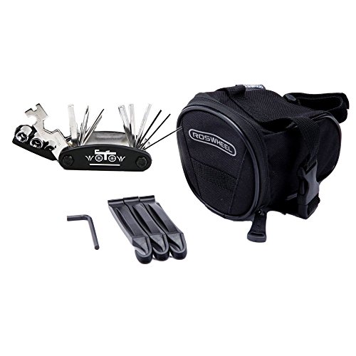 Full function, riding company --- With 14 in 1 tool kit which can fix most of problem during riding, three tire levers are useful for tire repair, chain hook help to hold links when splitting and assembly, saddle bag can fill the tools in and other little items you want to collect.