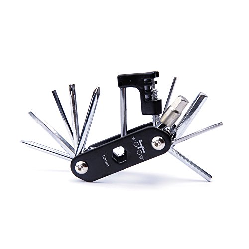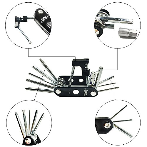 Durable, handy and compact --- All metal tool kits with Hex Key Wrench 2/2.5/3/4/5/6/8mm, Solid Wrench 8/9/10/mm, Phillips & Slotted screwdrivers, T-25 Torx and chain breaker.