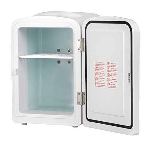 Features a removable shelf and a self-locking recessed door handle.The mini fridge works without any liquid refrigerants (like freon), noisy motors or messy condensation. Works best with cans, for best results with other food, wrap in aluminum foil.
