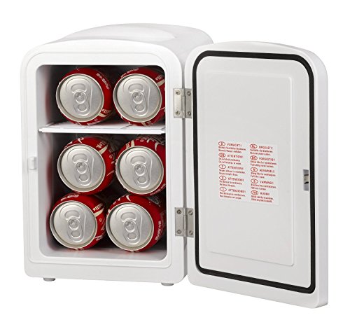 Gourmia GMF600 Portable 6 Can Mini Fridge Cooler and Warmer for Home ,Office, Car or Boat AC & DC, White - 110V
