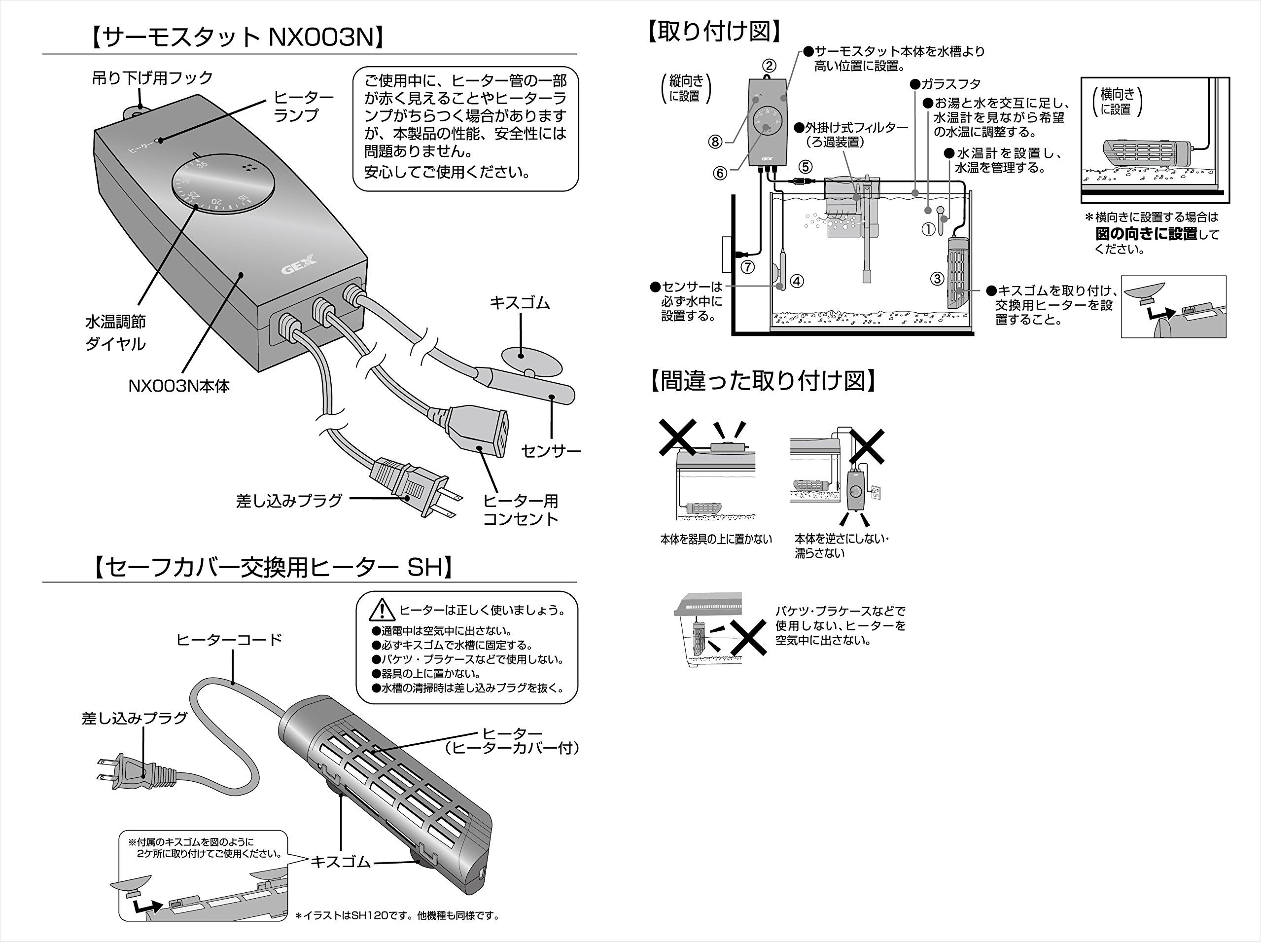 ※ Tropical Fish Heater Safety Measures Council "SH Standard" Compliant ~ Three Safety Functions "Inadvertent" Response ~ Temperature sensor works even if it goes into the air, control to a safe surface temperature.