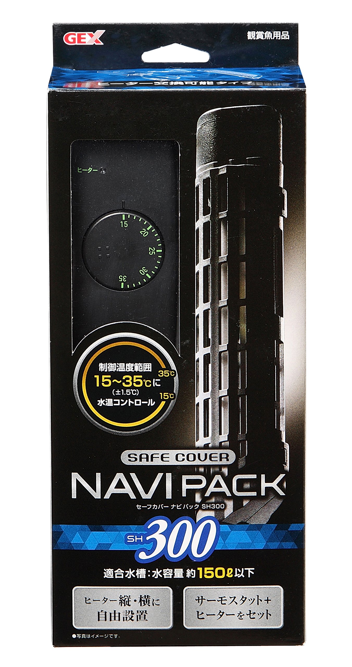 Suitable aquarium: Water capacity About 150 liters or less <Safety cover replacement heater> Heater body size: width 4.04 x length 18.7 x height 4.7 cm (including kiss rubber) Heater code: about 1.2 m Rated power consumption: 300 W <thermostat NX003N>