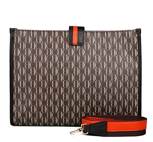 -. Title : JOLLYCHIC CHCH Signature Leather Wristlet Clutch Handbag Shoulder Purse Wallet (Coffee)
