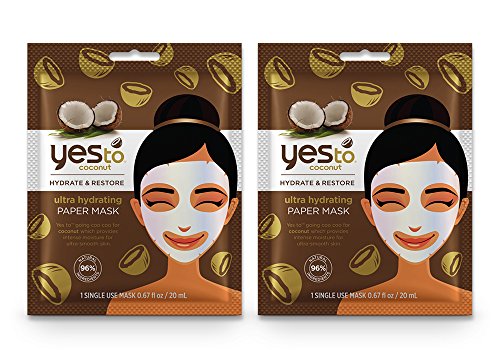 -. Feature : Yes To Coconut Ultra Hydrating Paper Mask will have you going coo coo for coconuts! / 6 single-use Yes To Coconut Ultra Hydrating Paper Masks are rich in coconut extracts and ultra-hydrating for those times when your skin needs an extra dose of moisture and a tropical vacation / Gently unfold mask and apply to clean skin. Adjust around eyes, nose and mouth, smoothing to fit the curves of your gorgeous face. Close eyes and relax for 10 minutes. Remove mask and dispose / This product is 96% natural and formulated without Parabens, SLS and Silicones. Leaping Bunny Certified / More great masks from Yes To include the Protecting and Soothing Bundle, Clear Skin/Acne Bundle, Hydrating and Conditioning Bundle, Detoxifying Bundle, Mud Mask Bundle, and Date Night Bundle