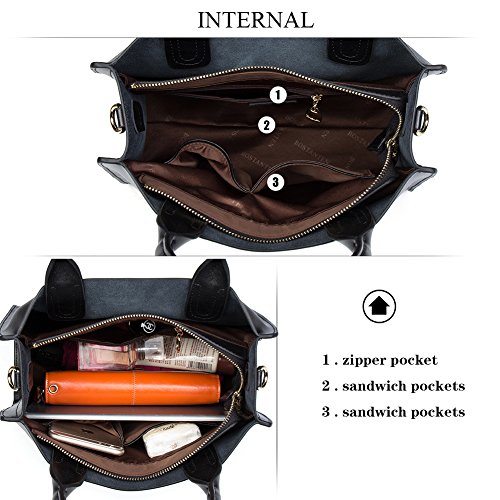 -. Feature : [HIGH QUALITY MATERIAL] Luxurious soft cow leather, durable fabric lining. Come with light gold custom antioxygenic hardware, these make the leather handbags more luxury. The lining is durable and smooth. Generous and elegant. Zipper closure for your security. / [COMPARTMENTL STRUCTURE] The leather designer handbags internal compartment have 2 big inner compartment + 1 big inner zipper compartment + 1 inner zipper pocket + 2 cell phone pockets. Large capacity designed, this leather handbags comfortably holds an iPad mini, iPhone6s Plus, wallet, cosmetic, and other daily things, perfect to use as daily handbags for working, shopping or dating. / [DIMENNSIONS] (L)12" x (W)5.2"x (H)9.45" inch .with approximately 4.72 inch handles and 23.62 inch shoulders. / [DELICATE AND PRACTIAL] Hand made by professional artisans. The handbag appearance concise and atmosphere, powerful at the same time. Fully lined interior includes inside pocket, detail stitching matches the bag color. / [ATTENTION]: BOSTANTEN products ONLY delivered by BOSTANTEN or FBA. And we have our own trademark. If you buy BOSTANTEN products from other delivery channel, BOSTANTEN disclaim any responsibility for your purchasing. Thanks! There are many different bags on our store. You can search BOSTANTEN on the amazon.