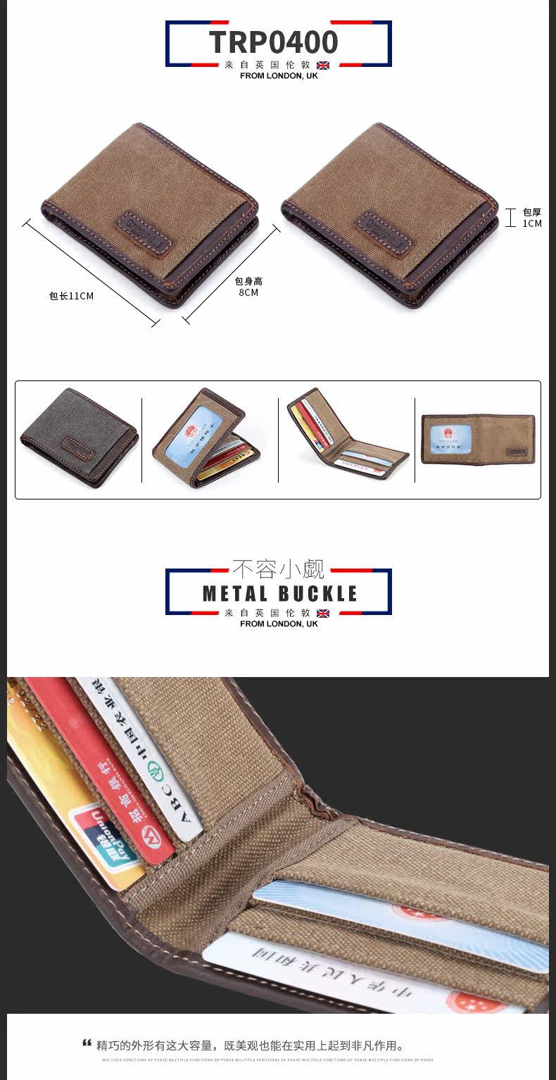 男式钱包长款版休闲潮男社会简约时尚个性薄帆布钱包