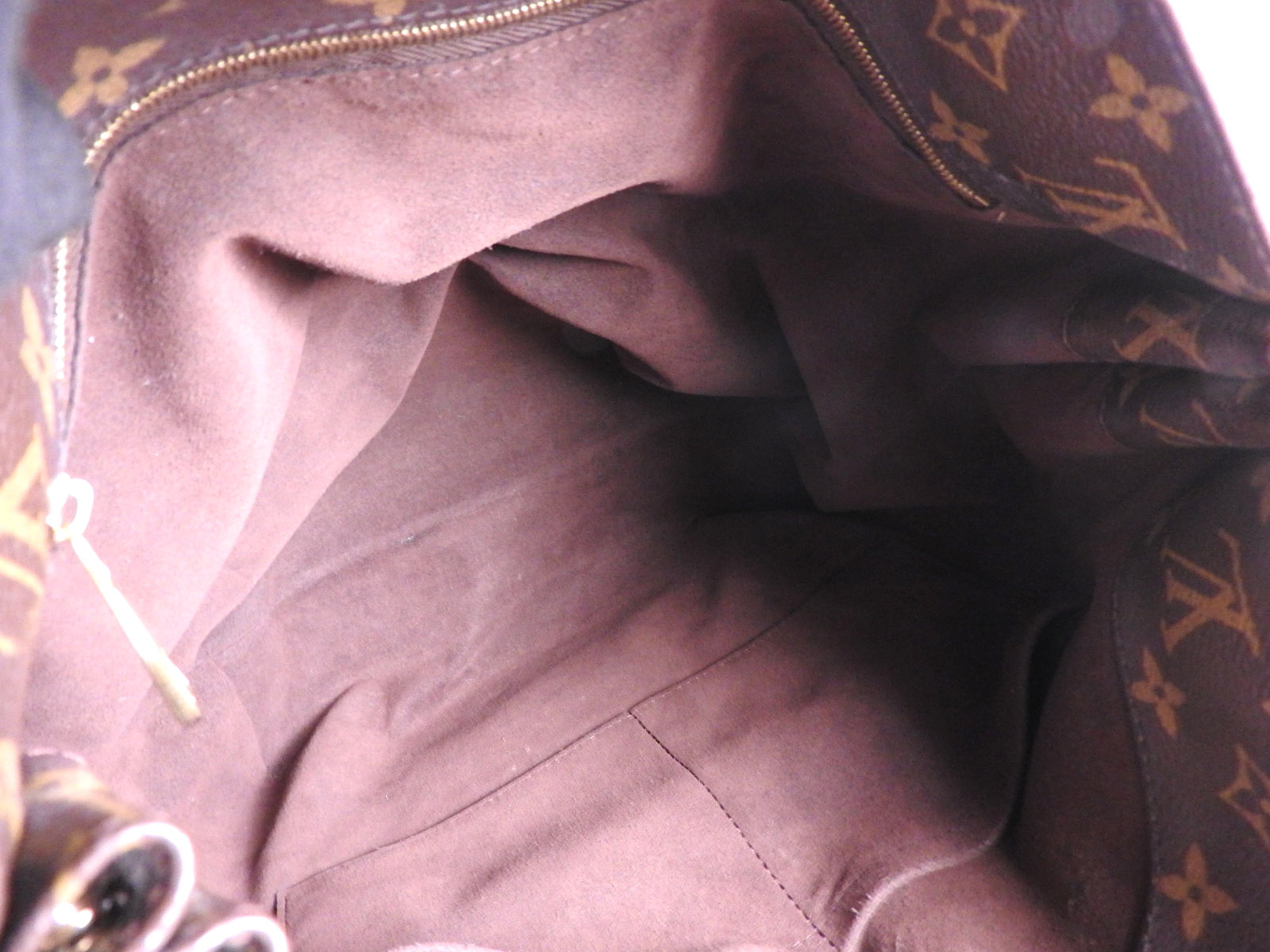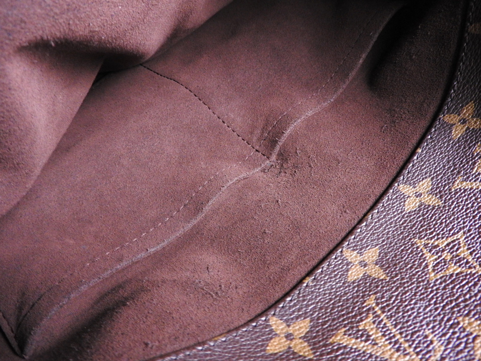 | Exterior | Monogram: Slightly used feeling. Slight stains and wrinkles. Leather: Used feeling. Some stains and tanning. |