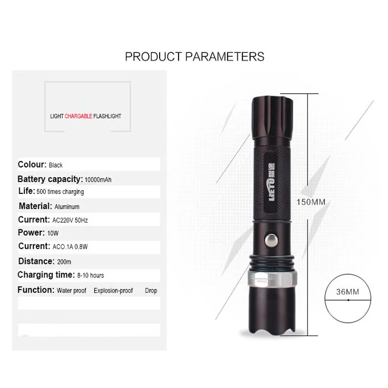 Package includes:1 x LED Flashlight Torch (not include battery)