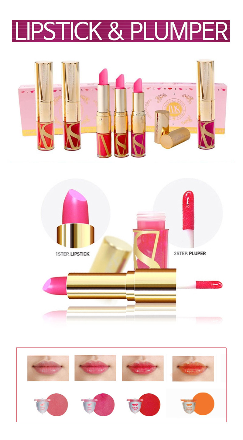 (Lux Wellos volume pump is a substantial dual product consisted of the lipstick with moist color effect and the plumper with adds volume to your lips.)
