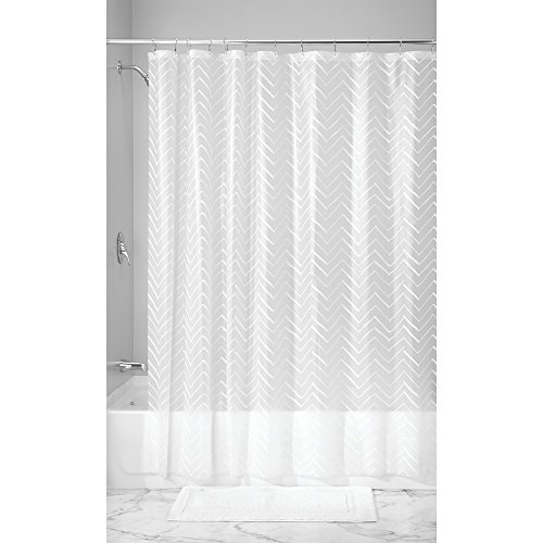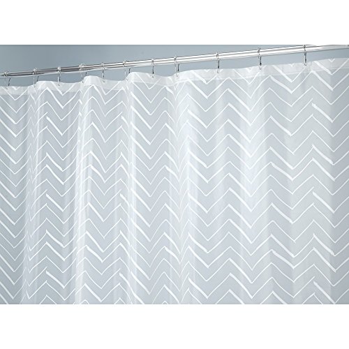 InterDesign Chevron Sketched Decorative PEVA 3G Shower Curtain Liner, PVC-Free, Mold & Mildew Resistant, Odorless, No Chemical Smell - 72" x 72", White