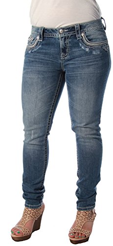 -. Binding : Apparel -. Brand : Miss Me -. Department : womens -. Feature : Logo hardware detailing throughout / Featuring unique whisker wash detailing -. Label : Miss Me Juniors Sportswear -. Manufacturer : Miss Me Juniors Sportswear -. Model : JP7787S -. PackageQuantity : 1 -. ProductGroup : Apparel -. ProductTypeName : PANTS -. Publisher : Miss Me Juniors Sportswear -. Studio : Miss Me Juniors Sportswear -. Title : Miss Me Women's Chevron Embroidered Skinny Denim Jean