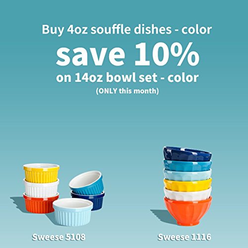 So elegant! Serving well as a multi-purpose kitchen helper! ▶ The 4 ounce ramekin set, diameter 3.7 inch, height 1.7 inch. Just the right size for creme brulee, individual cobblers, cupcakes, or any number of other recipes. And SIX set is a great when you want to use them for ingredient prep. ▶ Striated edges allow you to put these creme brulee dishes into the oven with more comfortable grip, worry free about slipping. And the striated edge makes these souffle dishes look more fashionable and help you to better match your dessert. ▶ Dishwasher safe and easy to clean by hand if needed. They are safe for freezer, microwave, and oven as well. The versatility of Sweese porcelain souffle set doesn't stop there Are you a DIY lover? Throw in a few pebbles for drainage, add a little potting soil and some clippings, and you can use them for mini-planters. Sweese souffle dishes are small enough to fit on a windowsill, yet large enough to provide ample growing space for a steady supply of kitchen herbs. How interesting and functional!Go ahead, decorate your life! Best Gift Option They are packaged in a well wrapped box, a perfect gift for your friends and family on Housewarming, Wedding party, Mothers' Day, Fathers' Day, Christmas and New Year's Day. 0 |