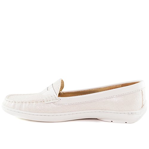 | Marc Joseph New York Women's Atlantic Pebble Grainy Penny Strap White Bottom Loafer |