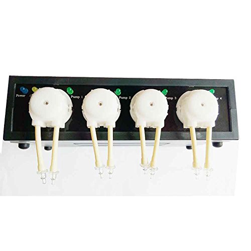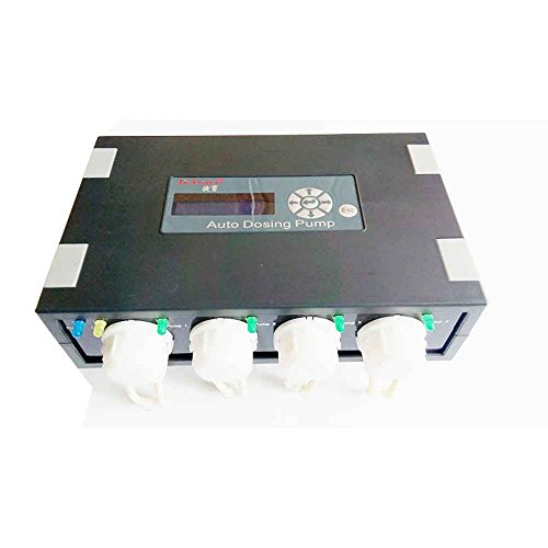 Specification Size 23.5 x 15 x 6.5cm Power 110V to 240V 50/60Hz The DP-4 is a new, affordable dosing pump with 4 dosing heads. You can program each pump to come on up to 24 times a day and dispense a precise amount of solution, which allows a user to keep their tank parameters stable, and removes the need for mixing supplements daily. The controller is easy to use and advanced, and each pump can be programmed individually. The DP-4 is perfect for any tank, as it allows for dosing in both large and small increments. The DP-4 comes with a power supply and is plug and play after it is calibrated with a 100mL graduated cylinder or measuring cup (not included). Each pump has a 6 month warranty which covers replacement of any parts that fail due to manufacturing errors. with a Soft Tube 4 Tubes FixtureFeature