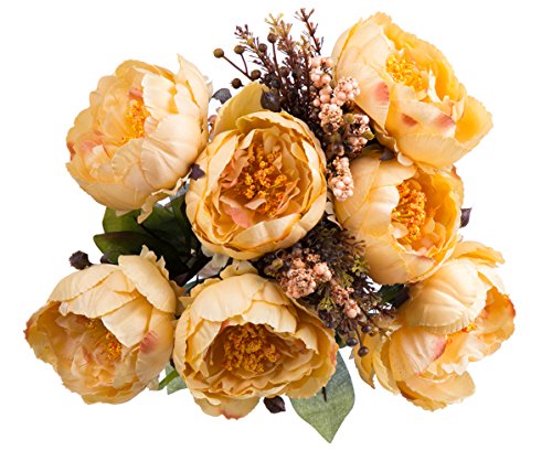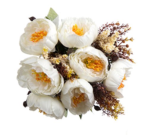 Budding Joy Artificial Peony Silk Flowers Bouquet Glorious Moral for Home Office Parties and Wedding,Pack of 1 Tips: *The picture shows the real items without any special processing. But color and brightness may differ a little due to different computer monitors or other factors. *It is difficult for packaging and transportation of such a long artificial flowers. If the buyer received the flower which head mosaic loose or fall off, you can plug tight by yourself. *The key of artificial flowers is overall effect of placing. The hair dryer blowed the flower when you received that, it will be more beautiful than before. *There would be accumulated dust if you put it in a place for very long time, You can use the hair dryer with cold wind to remove the dust *If it was seriously dirty,you could sink it into salt water with high concentration for 10 minutes and then add neutral detergent and then rinse twice. *Don't wash it by hands. We suggest that you don't need to wash it by hands and don't wash too frequently. It will fade if you wash it too frequently. *Please don't put it under strong sunshine.You'd better to dry it by the natural wind.Feature