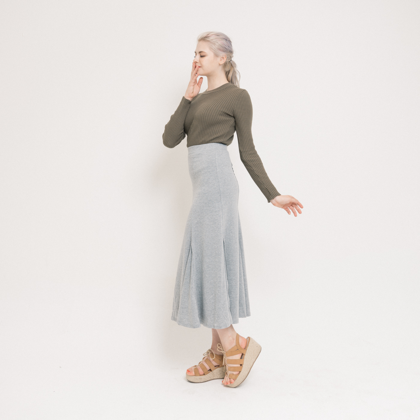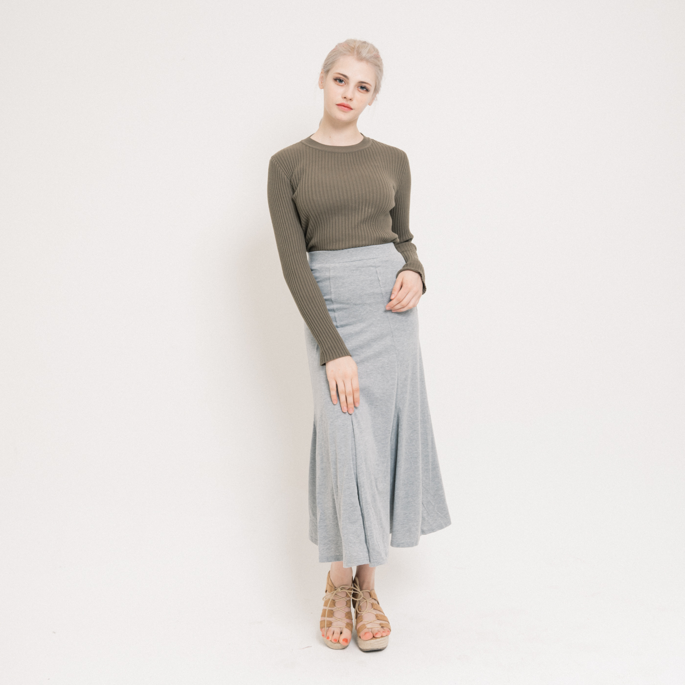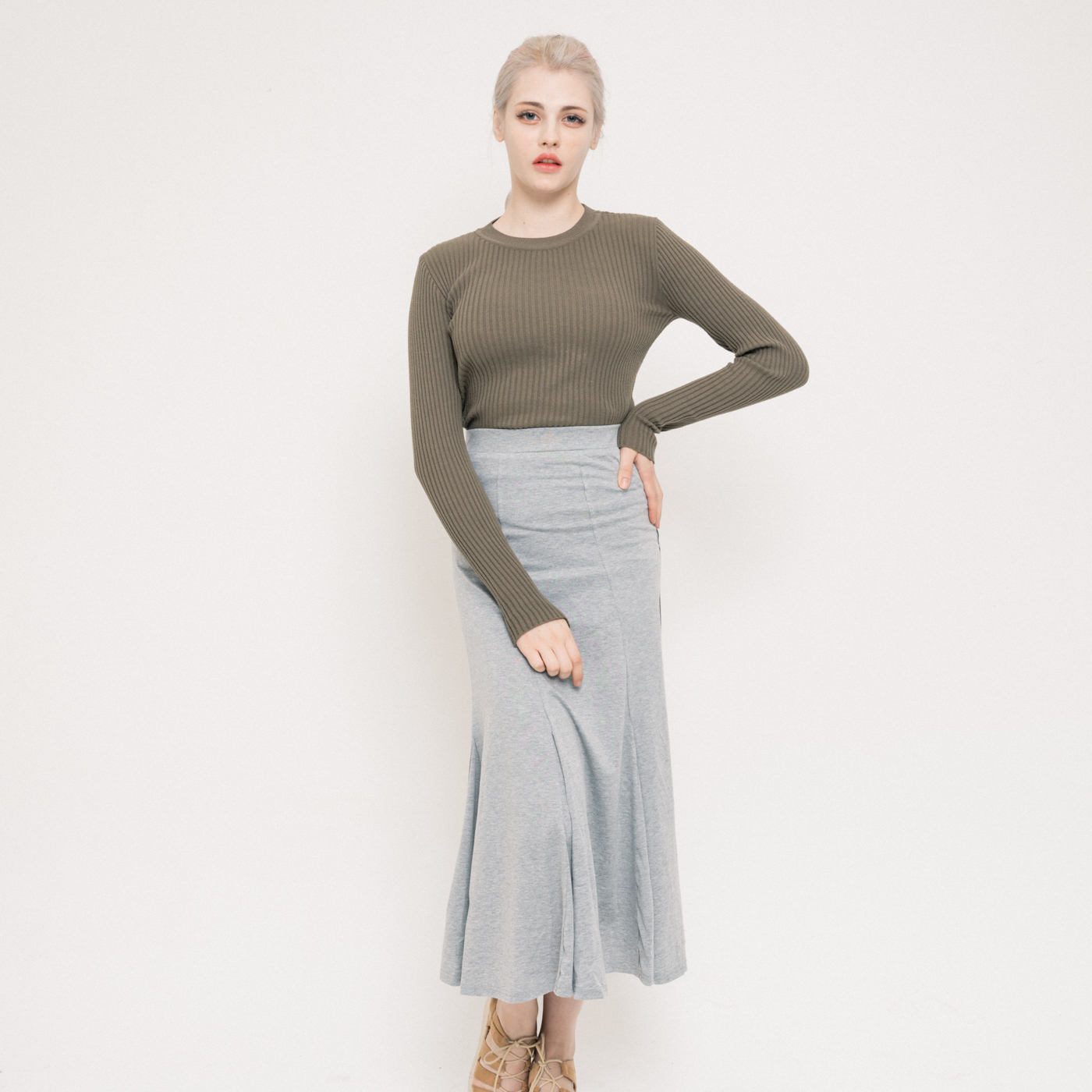 밑단 플레어가 멋진 롱 스타일의 스커트입니다.
