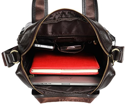 The real color of the bag may be slightly different between the photo and the actual item shown on website caused by many factors such as brightness of your monitor and light brightness. It is totally normal for any mistake owing to munual measurement.Cowhide material has natural leather smell,but it will be disappear after you use in a few days.