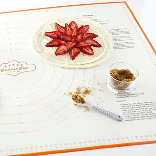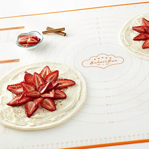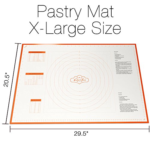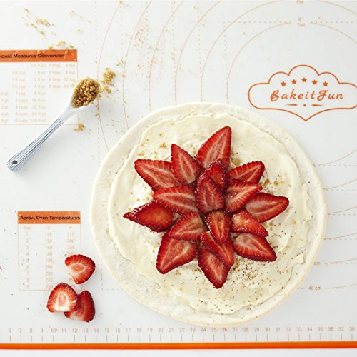Studio : BakeitFun Publisher : BakeitFun Product Description BakeitFun Silicone Big Pastry Mat With Measurements BAKE ALMOST ANYTHING: Perfect for all your baking needs! ? MONEY SAVER: No need for parchment or wax paper. Reuse this mat over and over! ? EASY MEASURING: Pastry Mat with Conversion Measurements! - Easy Convert from US to Imperial and Vice Versa. Now you can use recipes from all over the world and not worry about unit conversions. DISPLAYS Weight, Oven, and Liquids conversions. ? FDA CERTIFIED: Made of High Grade FDA Certified Silicon for safe and simple cooking! ? NON-STICK SURFACE: Easy to Work with any Dough and no need for flour, cooking sprays or grease. ? NON-SKID: Sticks to Your Countertop for Easy Dough Handling. ? Oven SAFE. Freezer SAFE. Dishwasher SAFE ? EASY CLEANING Wipe with soap and water or use dishwasher. ? YOUR SATISFACTION GUARANTEED! If you are not happy with your purchase for whatever reason, we will replace it or refund your money! We are confident that you will love your BakeitFun Pastry Mat as much as we do! Our stock is selling fast and won't last long. ACT FAST! When you click in the ADD TO CART button at the top right of this page you'll get the best pastry mat you'll EVER OWN! 0