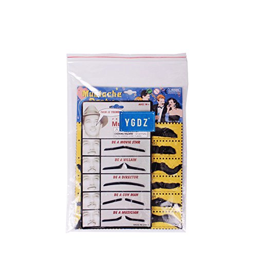 Whether you wear them to a mustache party, Movember event or as part of a Halloween costume, these mustaches will be a big hit. In an array of manly styles perfect for your desired look, these silly costume accessories make fun photo booth propsPackage Include:24 Pack x Funny Hairy Black Mustaches5 Pack x Movie Stars Fake MustachesThe ""YGDZ"" seller is the only authorized seller, we do not sell wholesale so there should be NO other sellers; Any other sellers are illegally selling their own products using our registered Trademarked company name. In this listing, purchasing from any seller other than ""YGDZ"" will result in a potentially faulty product that may be unsafe and cause injury. Please be sure to purchase this product from the ""YGDZ"" seller to avoid any problems with your product and to ensure both your safety and satisfaction. Manufacturer's warranty included only when purchased from YGDZ.Warranty: 45 days money-back & 18-month warranty. Any questions you have, please don't hesitate to contact us. We will get you back within 24hours.Feature