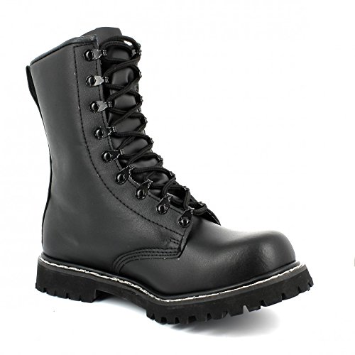-. Feature : Lightweight, comfortable & hard wearing. Water resistant / Black full grain leather / High leg. Padded collar / Double stitched oil resistant rubber sole. Reinforced toe cap & heel / 9 eyelet speed lace system. Sturdy nylon laces