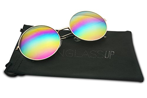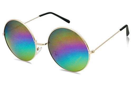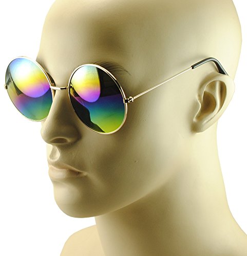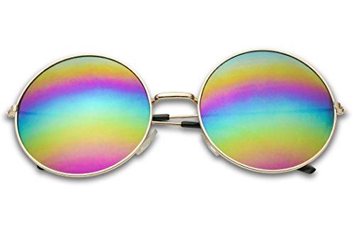 SunglassUP Oversized Round Metal Hippie BoHo Circle Rainbow Lens Sunglasses