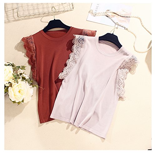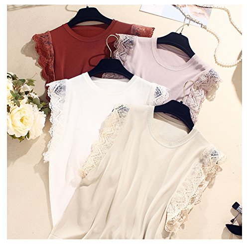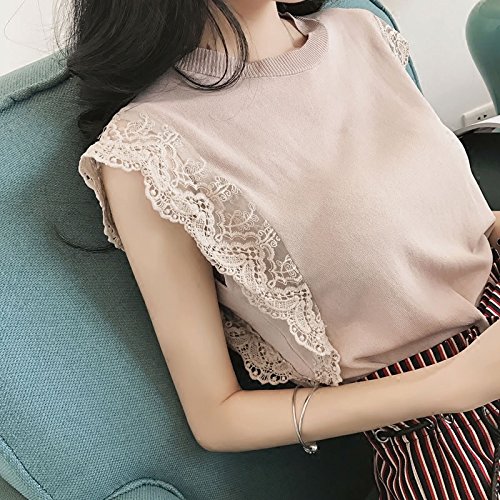 -. Feature : 素材:綿・ポリエステル / 袖部分のレースがかわいいノースリーブニット。 / パンツにもスカートにも合わせやすくシンプルだけどおしゃれな印象です。 / 黒・茶・ベージュ・ピンク サイズ:M(着丈53cm バスト88-100cm)