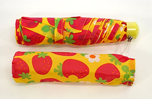 -. Title : アテイン KIDS用 軽量楽々3段折畳傘 親骨50cm イチゴ柄 イエロー 5159