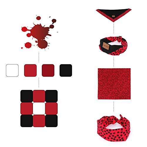 -. Feature : PACKAGE:Here are 2 neckerchiefs in 1 box, the triangle one is for your pets and the square one is for you or your kids / A PERFECT GIFT:This bandana is specially designed to dress up your pets, make them different and be more beautiful or gentler than others / GREAT SIZE: The triangle one can fit most dogs and cats,max neck girth:15.75"/40cm. And also, the square one fits the neck girth up to 15.75 inch / ENVIRONMENTALLY: By using High-quality suede fabric and 100% cotton, all materials are green ,non-toxic,natural skin care,super absorbent and breathable / CHECKS: Noble/Elegance/Generous. These neckerchiefs are with unique exclusive original design,which are suitable for everyday wear
