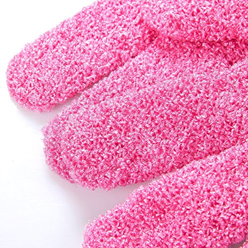 Juvale's Bath and Shower Exfoliating Glove Set is perfect for giving your skin and body the pampering it deserves. This set comes in appealing colors of Pink, Purple, Blue, and Beige that will add a lively touch to your bathroom. Made of from elasticized woven nylon material, these gloves are stretchable to fit most hand sizes. It is also absorbent and creates a rich, soft foam lather to give your skin a deep and therapeutic scrub. Gently rub onto skin in small, circular motions and exfoliate anywhere you like, including your arms, legs, torso, and neck. Buff away dead skin cells to invigorate the growth of new, healthy, and vibrant skin. Run exfoliating gloves under clear water after each use to rinse away residual body wash and exfoliated skin. Hang dry by the attached loop and keep away from excess humidity between uses. To prolong the lifespan of your bath gloves, disinfect using a mixture of 50 percent vinegar and 50 percent water at least once a week. The lightweight and portable size of each pair of gloves make it extremely packable for travel. Elevate your skin and body care routine by regularly exfoliating to achieve vibrant and healthy-looking skin.Feature