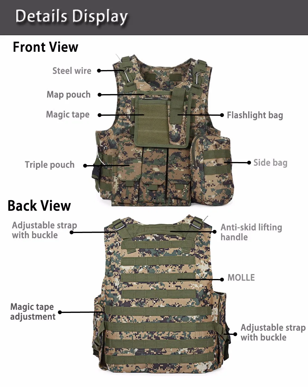 color:Black, Khaki, Army Green, CP ACU FG Camouflage