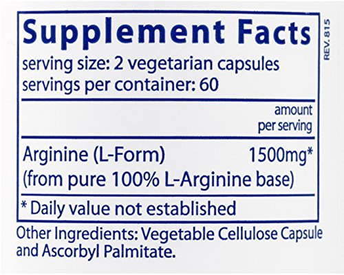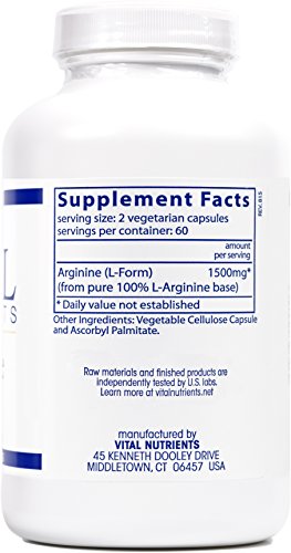 Vital Nutrients - Arginine 750 mg - Amino Acid Support for Heart Health - 120 Capsules