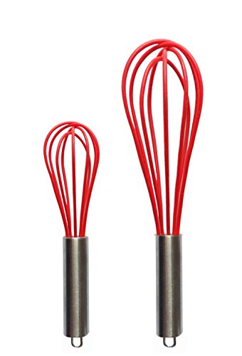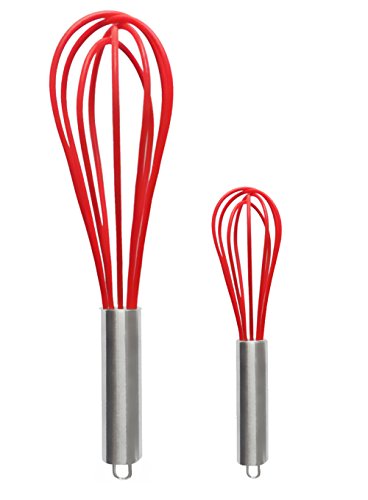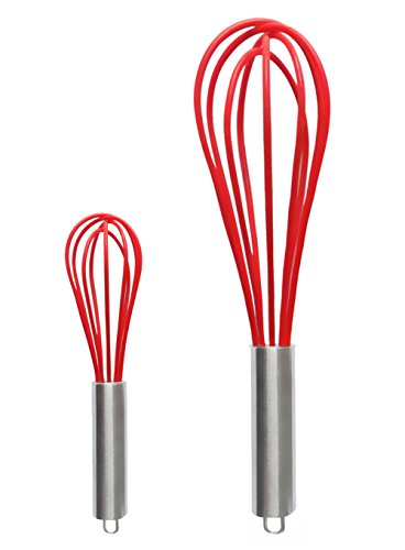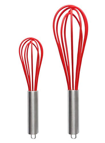 ¡iAbout the product - The whisk can beat eggs, stir batter, whip cream and stir sauces, an ergonomic design that makes use comfortable and easy. - The line will not mold, peel, crack, warp, absorb odors, or fade. - Two different sizes for all your cooking needs. - From beating a single egg to mixing a cake batter the sturdy and efficient classic whisk has multiple wires for adding volume and quickly smoothing lumps from mixtures. - The stainless steel handles (with hanging holes) are strong and comfortable in your hand, and they'll stand up to thick sauces and heavy ingredients.